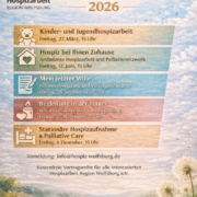 Inhalte: Im Mittelpunkt steht die eigene Auseinandersetzung mit Sterben, Tod und Trauer und die Entwicklung einer hospizlichen Haltung. Im Rahmen der Sterbebegleitung begegnen und berühren wir andere Menschen und werden von ihnen berührt. Daher sind Themen wir Wahrnehmung, Beziehung aufbauen, Nähe und Distanz sowie Gesprächsführung unverzichtbar. Sie erhalten Informationen zu Themen wie Essen und Trinken am Lebensende, Möglichkeiten der Palliativmedizin und Palliativpflege sowie ein Überblick über palliative Versorgungsangebote geben Sicherheit für die Begleitung zuhause, im Pflegeheim oder Krankenhaus. Sie lernen, rechtliche, spirituelle und ethische Aspekte der Sterbebegleitung kennen. Dabei legen wir großen Wert auf viele konkrete Situationen, Beispiele und praktische Anwendung.